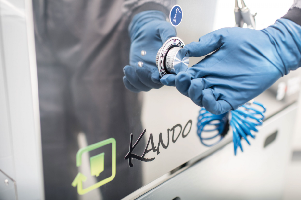 - Stroj sestavlja: 2 komori za čiščenje (predpranje, izpiranje), odcejevalna postaja z držalom, podnožje z omarico za posode, Karlrez membranske črpalke