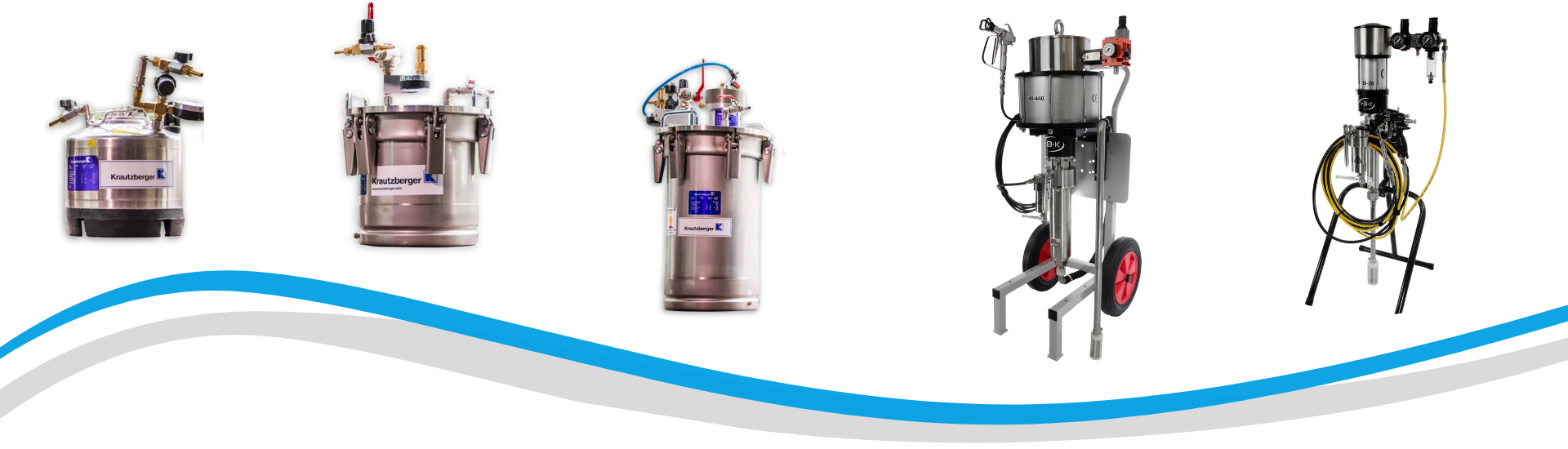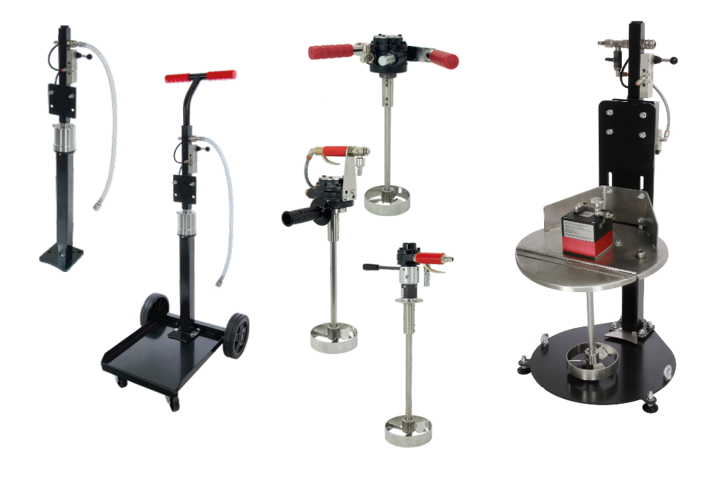 Črpalke in tlačne posode so lahko opremljene z različno dodatno opremo kot so regulatorji, mešala, stojala, cevi in pištole vseh vrst.