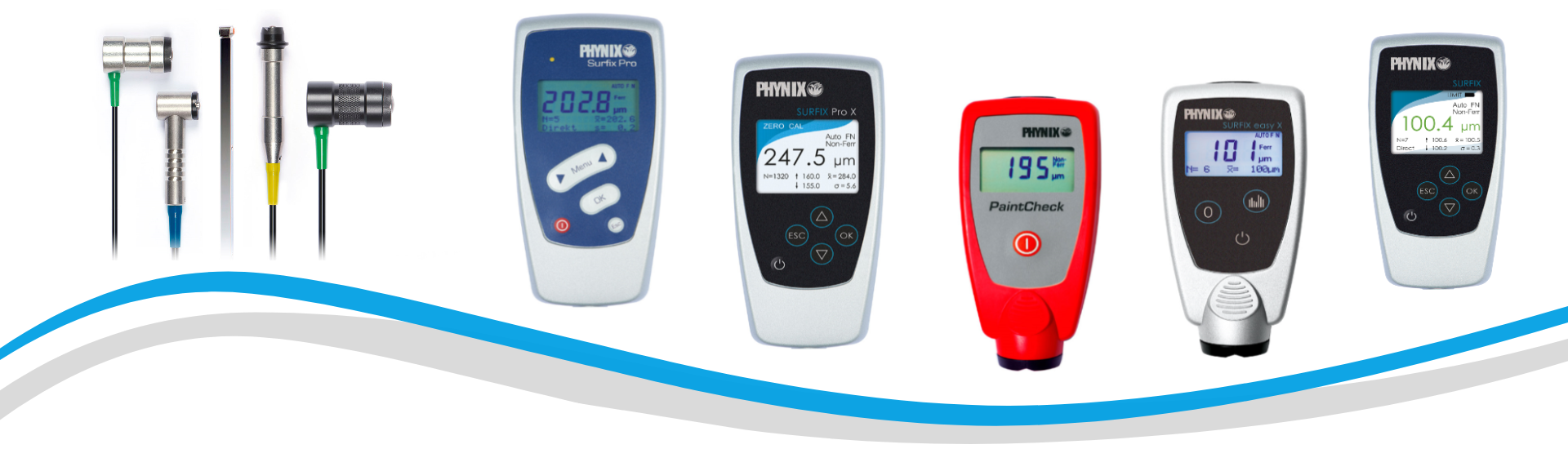 Poleg integriranih sond v standardnih modelih vam lahko ponudimo tudi širok nabor sond za merjenje debeline barve na odročnejših in nedostopnejših mestih. V ta namen ima proizvajalec PHYNIX na voljo zelo veliko specifičnih merilnih sond za merjenje vseh vrst premazov na različnih materialih.